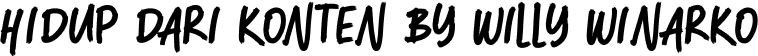 Buku ini berisikan pengalaman Willy Winarko untuk akhirnya bisa hidup dari kontennya. Merangkum pengalaman, pola pikir, dan tips and tricks yang Willy Winarko dapatkan selama berkonten. Buku ini dapat dijadikan pedoman untuk mengasah pola pikir menjadi kreator yang menghasilkan dan bukan bertujuan untuk mencapai kesuksesan moneter secara cepat.